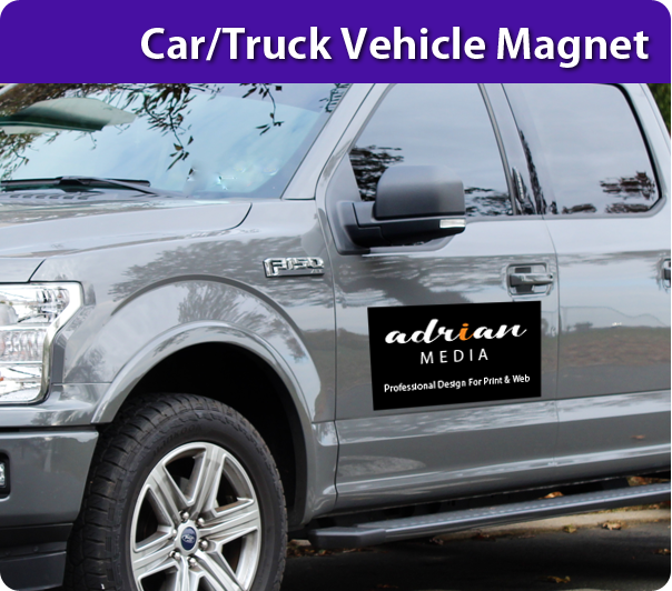 Order your professionally designed custom car/truck vehicle magnets today. Let AdrianMedia save you from the headache of trying to design for you and your business. We will design your card with the necessary information, images, colors and branding to appeal to your client base.